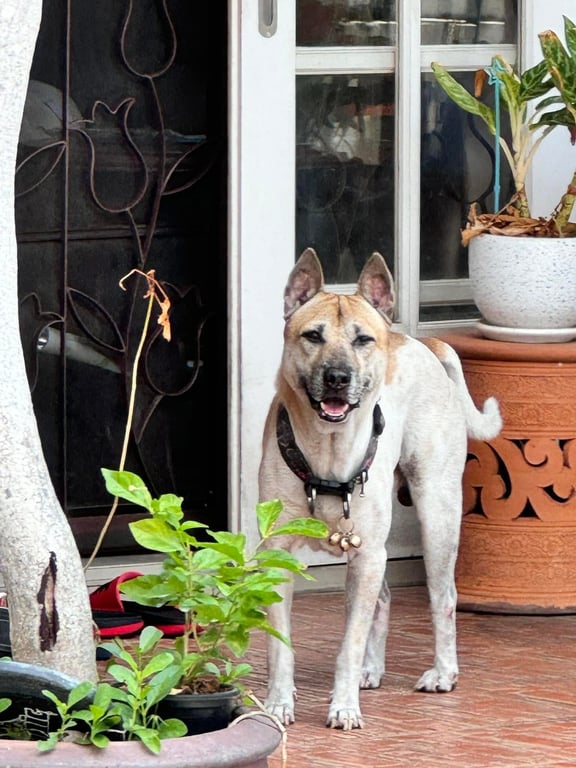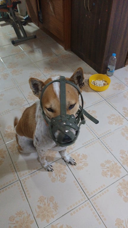 ตอนหายไปน้องยังใส่ตะกร้อครอบปากอยู่เป็นสีเขียว ขาหลังข้างขวาหักแต่เดินหรือวิ่งได้ตามปกติ หูตั้ง ตาคมคล้ายๆตาวัว
