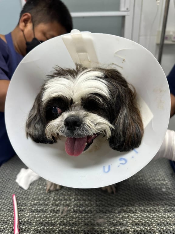 ประกาศ ตามหาเจ้าของน้องคะ น้องไม่มีชื่อ เพศผู้ เจอหลังห้างพาราได้ซ์ หมู่บ้านซอยเสรีวิลล่า 4 ตอนนี้น้องรักษาตัวอยู่ที่ รพ สัตว์สวนหลวง น้องโดนหมาจรกัดมาหลายจุดเลยคะ และน้องตาบอด 1 ข้างซ้าย ใครเป็นเจ้าของมารับได้ที่ รพ.สัตว์สวนหลวง — at โรงพยาบาลสัตว์สวนหลวง.