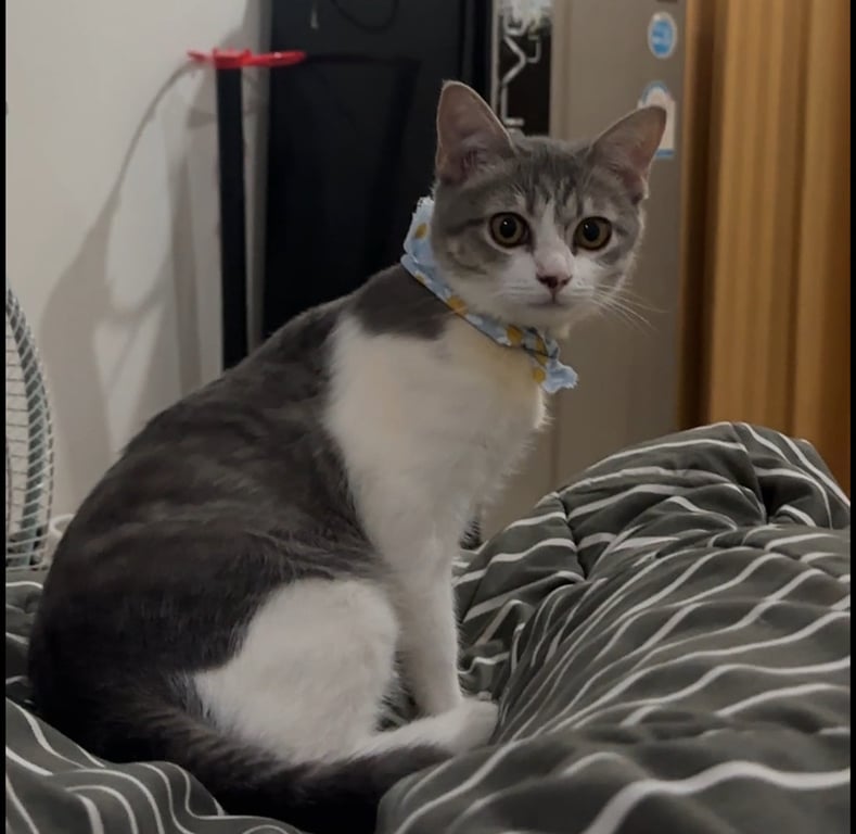 น้องตัวขาวเทาลายเหมือนถุงเท้าหายบริเวณบางแสนจังหวัดชลบุรีตรงคอนโดดิไอไอดอลลองข้างข้างกลัวคนตัวใหญ่พันธุ์เปอร์เซีย