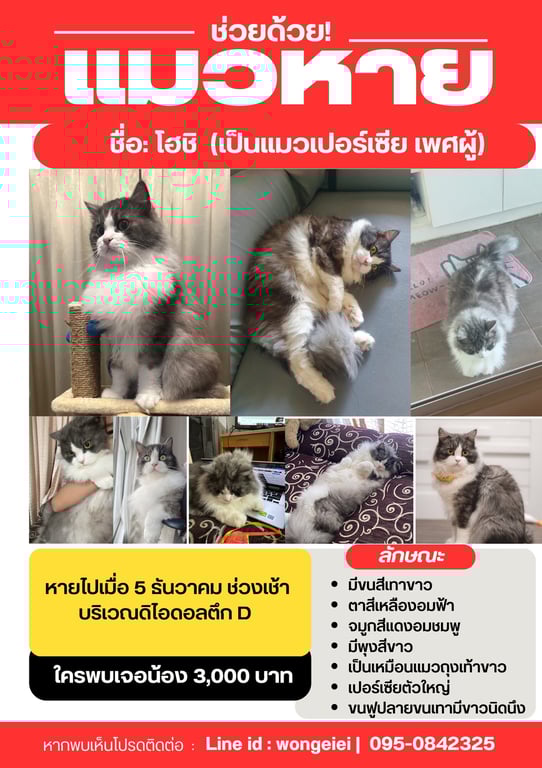 โพสหาตามโซเชียล เดินตาหาน้องเรียกชื่อ บอกแมวจรให้น้องกลับบ้าน