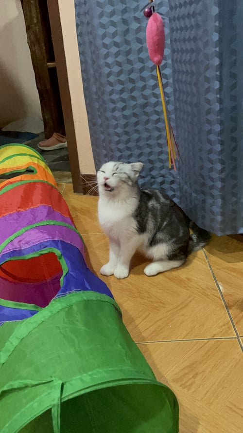 เห็นสุดท้ายคือกำลังไต่รั้วบ้าน ซึ่งสามารถเชื่อมไปหาบ้านหลังอื่น น้องกระโดดสูงไม่ได้ ปกติไม่เคยไปไหนไกล ไม่เคยหาย เลี้ยงเปิดตลอด น้องมาอยู่หมู่บ้านนี้ได้หนึ่งปีคะ