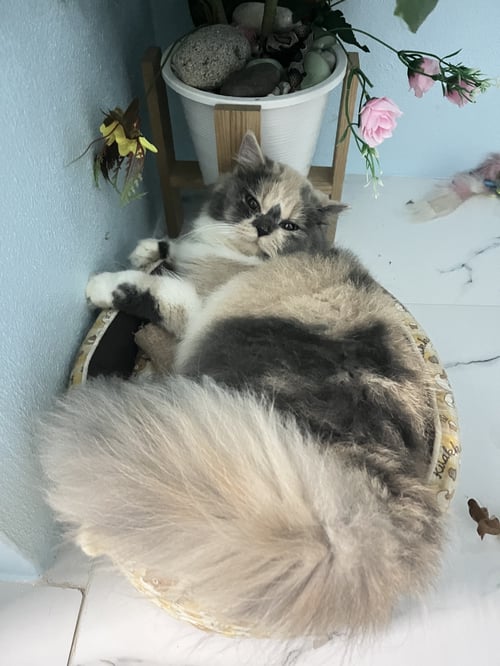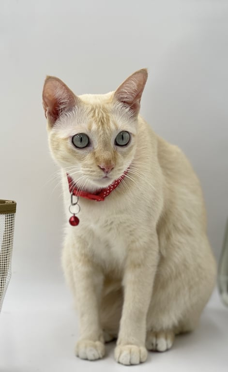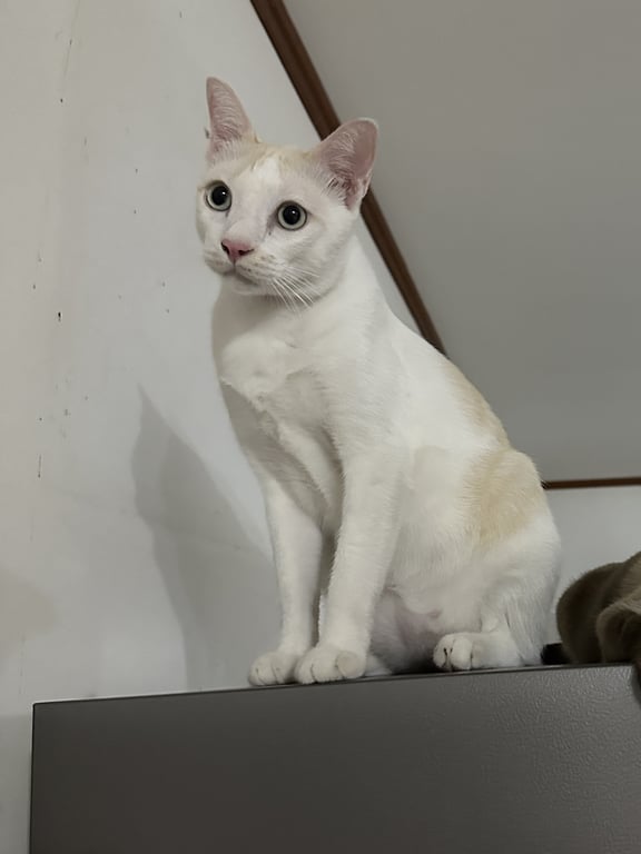 น้องตกใจเสียงประทัดที่เด็กในซอยจุดเล่นช่วงกินเจค่ะ ทำให้น้องตกใจวิ่งเตลิดออกทางประตูหน้าบ้านไป น้องเป็นเเมวที่เลี้ยงกึ่งปิดกึ่งเปิด รับมาเลี้ยงตอนน้องอายุได้ 5 เดือน เวลาออกไปข้างนอก น้องจะเข้ามาตลอด ไม่ว่าจะเข้ามานอน เข้ามากินข้าวหรือน้ำ หรือ เเม้จะมาเข้าห้องน้ำ ไม่ยอมอึในสวนเหมือนตัวอื่นเลย ติดการมาเข้าห้องน้ำในกระบะทราย น้องเป็นเเมวเปอร์เซียเเท้ ขนฟู ขี้กลัวคน ซ่อนเก่ง ปกติเรียดเเล้วน้องจะออกมาตลอด เเต่ตอนนี้ยังไม่กลับบ้านเลย