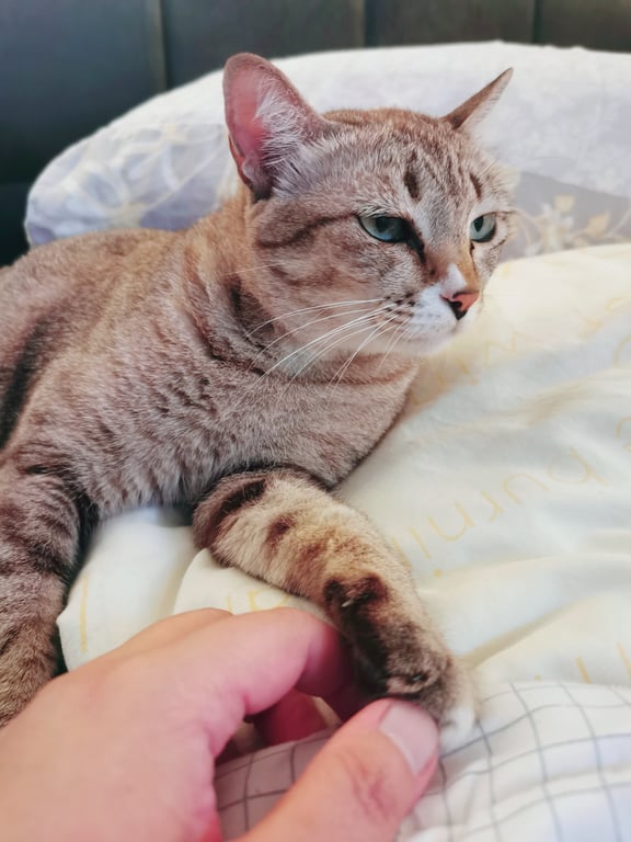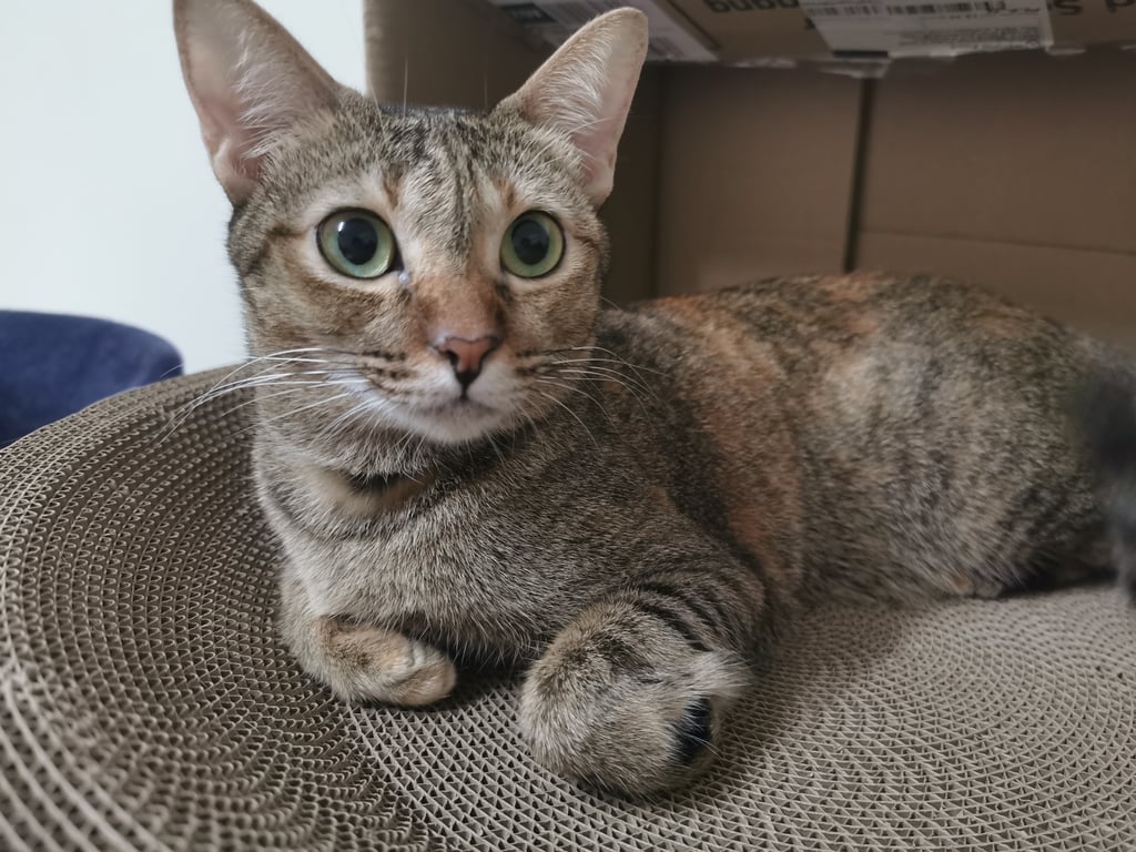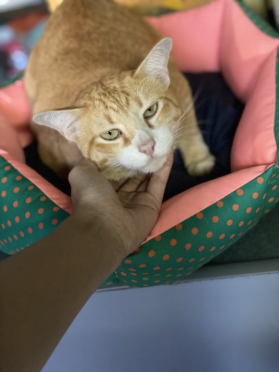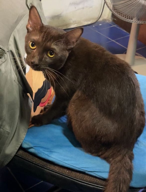 น้องตกใจเสียงประทัดที่เด็กในซอยจุดเล่นช่วงกินเจค่ะ ทำให้น้องตกใจวิ่งเตลิดออกทางประตูหน้าบ้านไป น้องเป็นเเมวที่เลี้ยงกึ่งปิดกึ่งเปิด รับมาเลี้ยงตอนน้องอายุได้ 5 เดือน เวลาออกไปข้างนอก น้องจะเข้ามาตลอด ไม่ว่าจะเข้ามานอน เข้ามากินข้าวหรือน้ำ หรือ เเม้จะมาเข้าห้องน้ำ ไม่ยอมอึในสวนเหมือนตัวอื่นเลย ติดการมาเข้าห้องน้ำในกระบะทราย น้องเป็นเเมวเปอร์เซียเเท้ ขนฟู ขี้กลัวคน ซ่อนเก่ง ปกติเรียดเเล้วน้องจะออกมาตลอด เเต่ตอนนี้ยังไม่กลับบ้านเลย