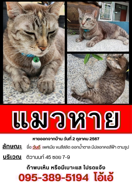 วันที่หาย: 17/09/2567 05:20 น.