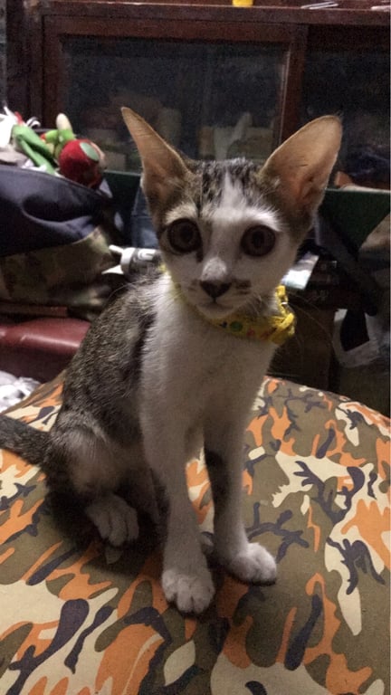 อยู่ตามลานจอดรถเดอะโซน แถวๆหน้าพิซซ่าฮัท เชื่องคนมาก ยามเห็นมาเร่ร่อนอยู่ร่วมเดือนแล้ว