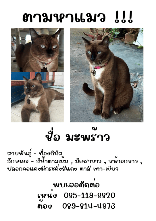 ทราบข่าวว่า น้องถูกรถชนตายตั้งแต่วันที่หาย ขอบคุณมากๆ ครับ