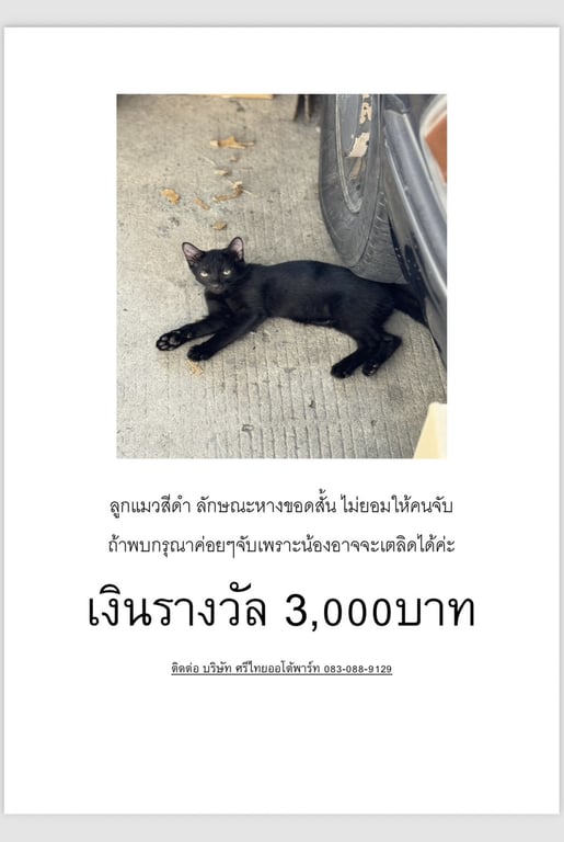ดูจากกล้องวงจรปิดที่ร้านเห็นน้องกระโดดเข้าทางล้อรถส่งของที่ร้าน เพราะตกใจกลัวหมาแถวร้าน รถส่งของก็ออกไปโดยที่ไม่เห็นว่าแมวอยู่ใต้รถ รถส่งของได้ไปส่งของระแวก อ่อนนุช - พระราม 4 ไม่ทราบว่าน้องไปลงกลางทางแถวไหนค่ะ