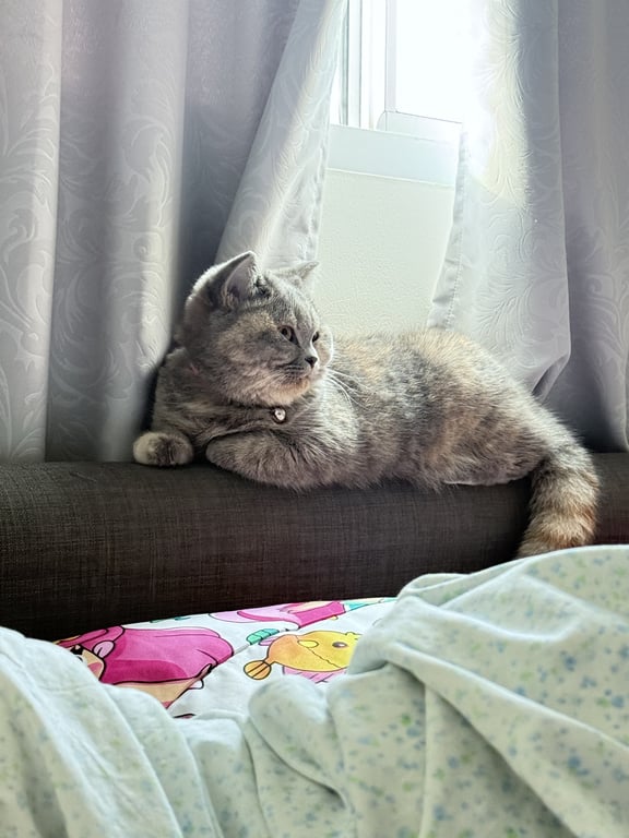 น้องร่วงไปหลังโซฟา ออกไม่ได้ แล้วน้องเป็นแมวไม่ร้อง ดีที่อาม่สได้ยินเสียงเกา เลยดึงโซฟาออก ละน้องก็ออกมา