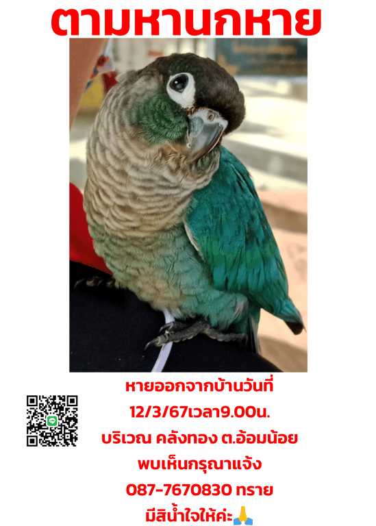 ติดป้ายประกาศตามเสาไฟฟ้าไว้ ผู้ที่พบนกเห็นป้ายเลยโทรมาให้ไปรับค่ะ