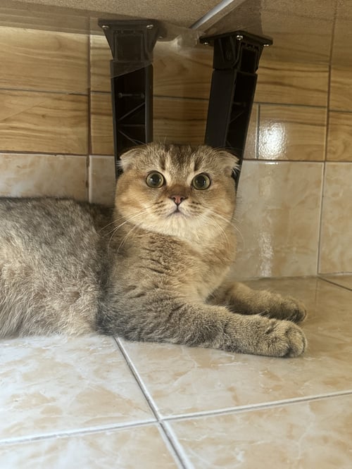 หูพับดีด ชอบเดินช้าๆ ทำอะไรช้าไปหมด นิสัยขี้อ้อน ชอบอยู่คนเดียว ชอบนอนที่เย็นๆ ขี้กลัวเพราะไม่เคยออกไปไหนเลย เลี้ยงระบบปิด 100% น้องไม่เคยออกจากบ้าน แต่แอบปีนกำแพวตอนตากผ้าอยู่ออกไป