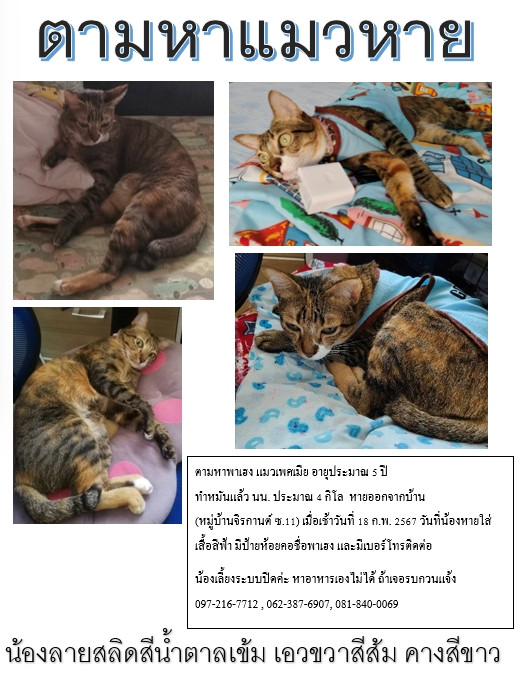 น้องเปิดซิปกระเป๋าสัตว์เลี้ยง หลุดออกจากรถไป ถ้าพบเจอได้โปรดโทรแจ้ง สามารถติดต่อได้ 24 ชั่วโมงค่ะ