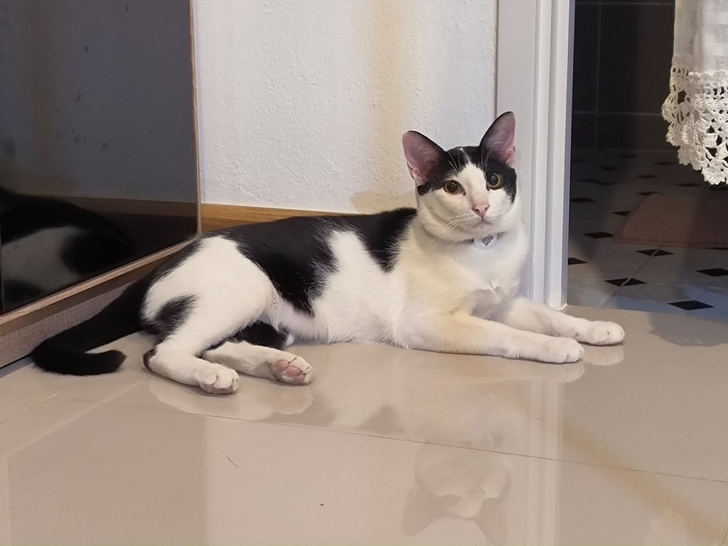 น้องทำหมันเเล้วค่ะ ขนสีอ่อน หน้าท้องส่วนล่างขนจะบางกว่าพื้นที่อื่นเล็กน้อย มีจุดสีดำเล็กๆที่ฝ่าเท้าด้านซ้าย
