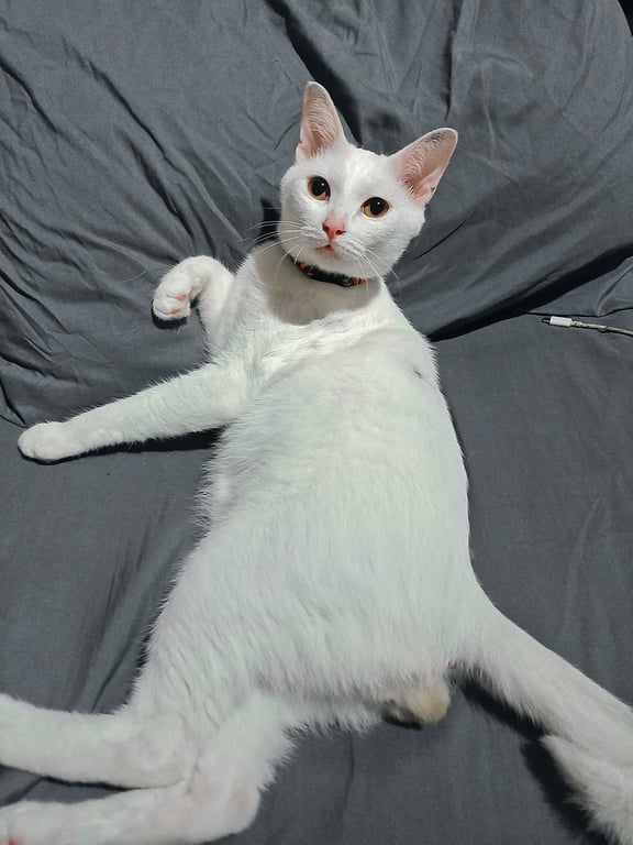 น้องหายไปช่วงเช้า วันที่02/04/66 น้องชาย กะทิ เพศชาย สีขาว หางสีดำด่าง ตาสองสี เหลืองฟ้า