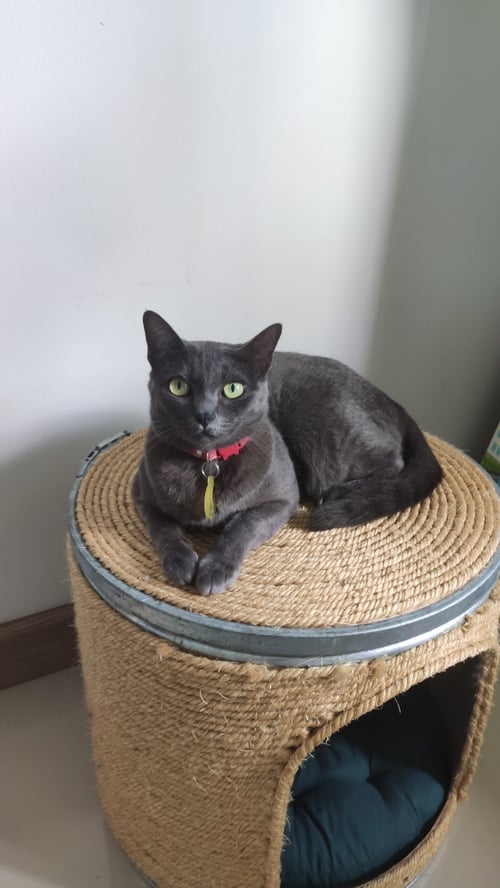 ได้ยินเสียงแมวกัดกันหน้าบ้าน โชคดีที่ยังไม่นอนหลับเลยวิ่งออกไปดู เจอแมวจรตัวที่น้องวิ่งตามหายไปวันนั้น เลยคิดว่าน้องน่าจะอยู่แถวนั้นด้วยเลยร้องเรียกแต่ไม่มีเสียงตอบ เรียกสักพักน้องร้องตอบ เลยมองตามเสียง เจอน้องหลบอยู่ใต้ท้องรถบ้านตรงข้าม เลยเอาอาหารมาล่อและอุ้มกลับบ้าน 😍