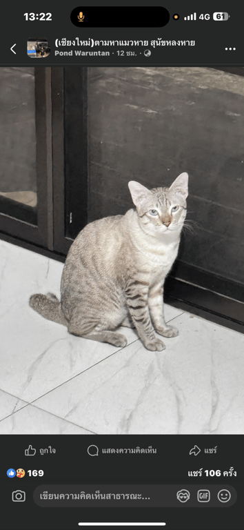 แมวเปิดบ้านละเดินหายออกมา ตื่นมา 7 โมงไม่พบตัว ดูจากกล้องวงจรปิด