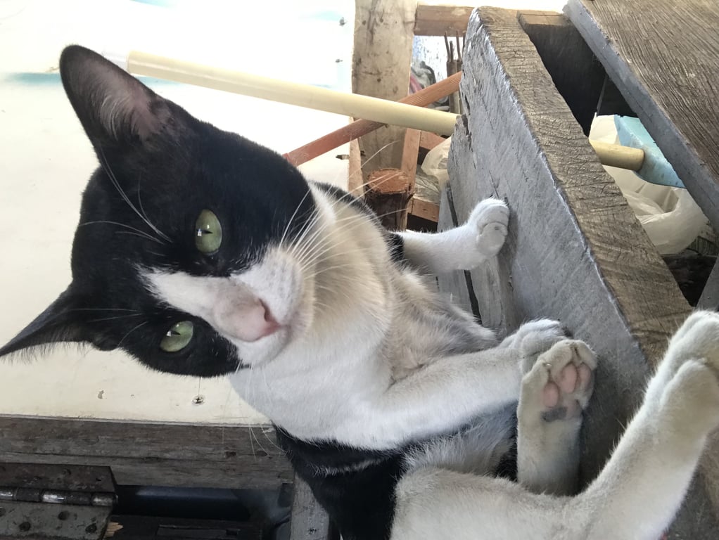 ขาขวาด้านหลังของน้องกระเพกแต่ใช้งานได้ปกติ จะร้องเสียงดังมากๆเวลาเจอแมวตัวอื่น
