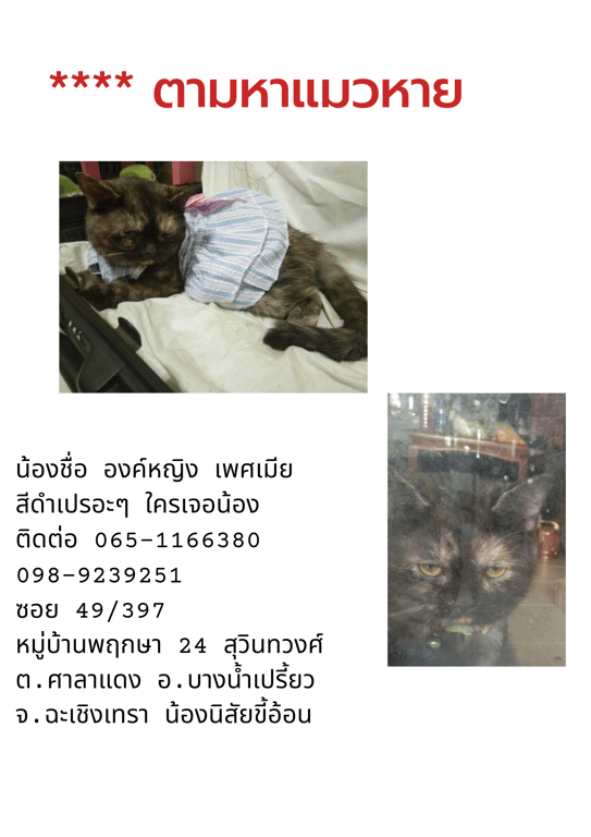 วันที่หาย: 29/12/2565 06:00 น.
