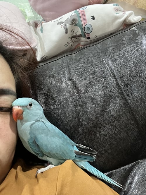 น้องเป็นลูกป้อน ตกใจเสียง แล้วบินขึ้นแต่ลงเองไม่ได้ค่ะ