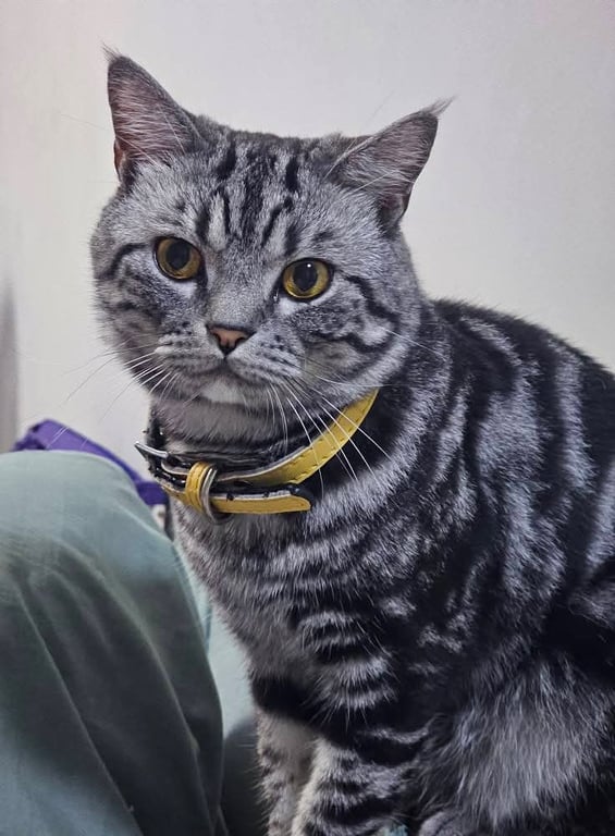 น้องเป็นตัวเมีย ทำหมันแล้ว มีปลอกคอสีเหลืองแบบนิรภัยใส่ไว้ค่ะ ไม่แน่ใจว่าถ้าหลุดไปเกี่ยวอะไรแล้วปลอกคอจะหลุดหายไหม หางจะเป็นหางคดม้วนๆที่ปลายหางค่ะ
