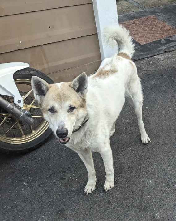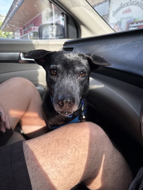 น้องไม่กัดค่ะ แต่กลัวคนค่ะ ตัวสีดำ แก่แล้ว หน้าหงอก