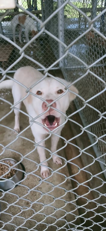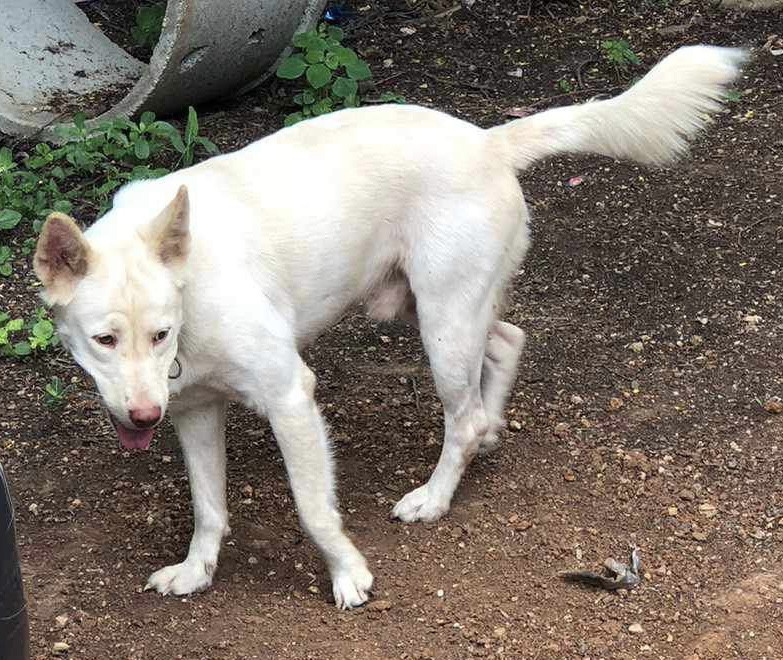 อายุประมาณ 2 ปี หน้าฝรั่ง จมูกชมพู เคยกินนอนอยู่กับแมว และเคยมีเจ้าของแต่เสียชีวิตจาการถูกไฟช็อตเพราะไปช่วยหมาของเพื่อนบ้านที่เป็นข่าว