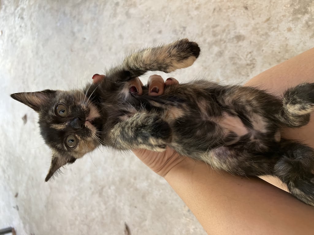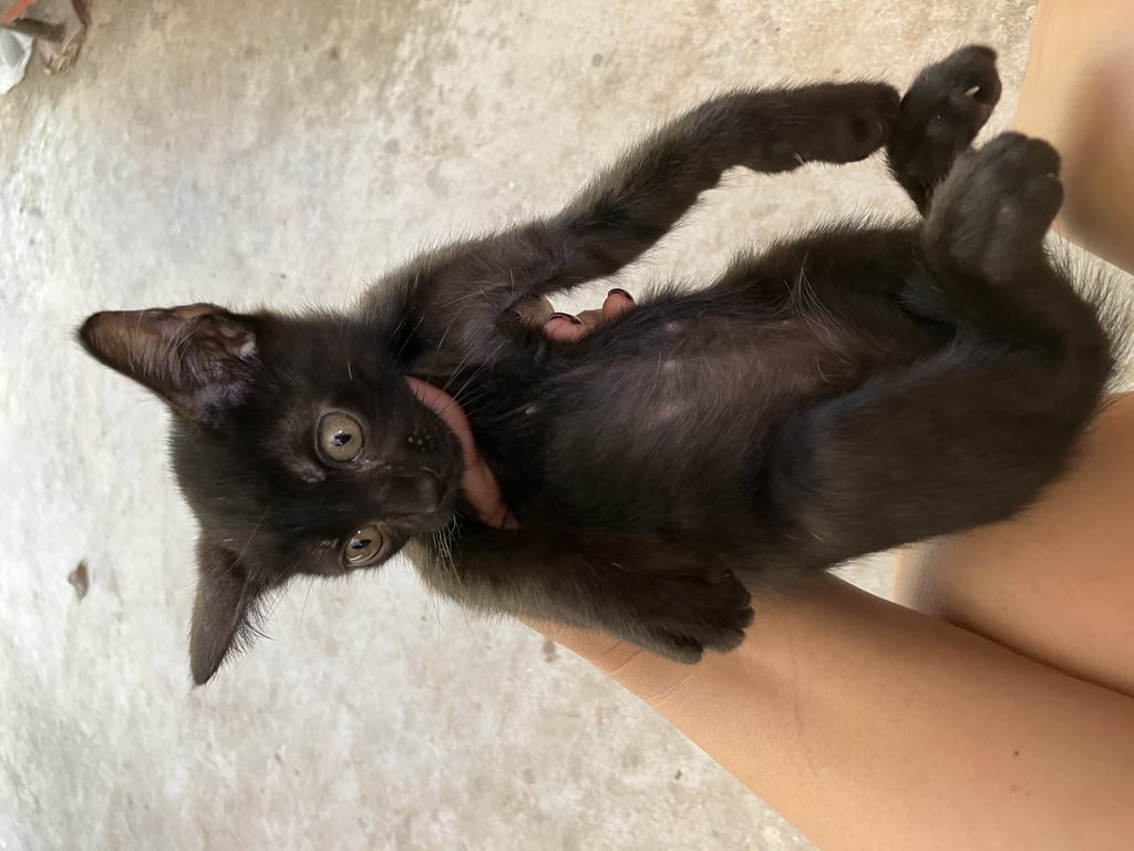 เป็นแมวสามสี2ตัว เพศเมีย กับแมวสีดำ1ตัวเพศผู้ อายุ2เดือน กินอาหารได้แล้ว