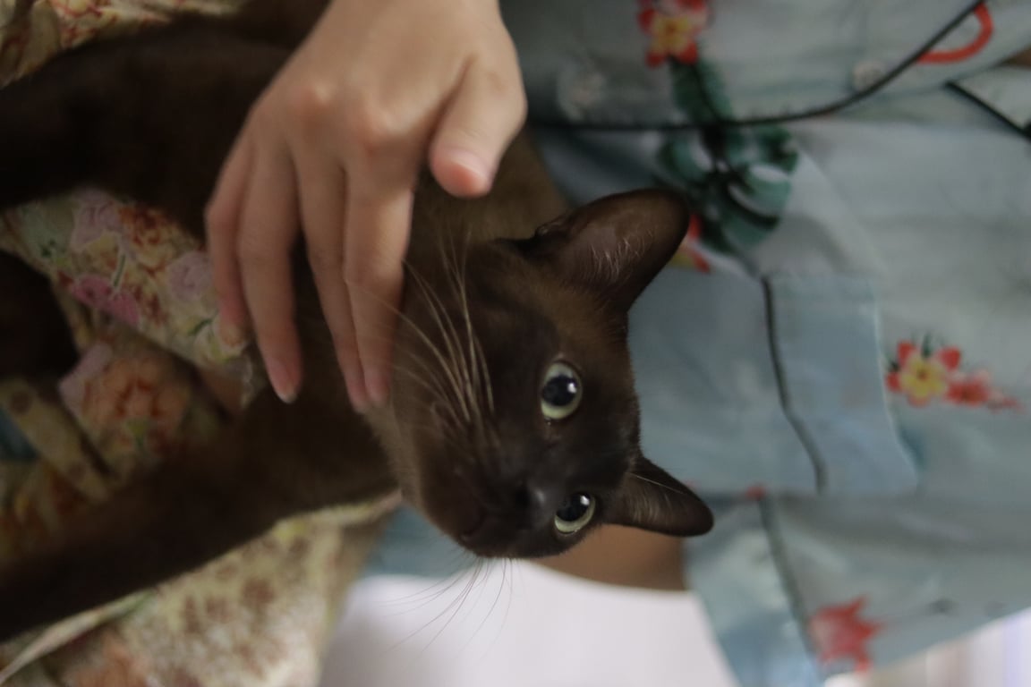 น้องเป็นแมวจรเพศผู้อายุน่าจะประมาณ 4-5 ปี ยังไม่ทำหมัน อัณฑะเป็นทองแดง หางขอด เวลาหิวก็มาอ้อนขออาหารกิน พออิ่มแล้วก็ไป แรก ๆ ทำตัวน่ารัก พอเราให้อาหารบ่อยขึ้นก็จะมักมากัดแมวที่เราเลี้ยงไว้ พอน้องมาขออาหารอีกก็เลยไล่ไป แต่วันนี้น้องมานอนซมอยู่หน้าบ้านเห็นแล้วสงสารก็เลยพาไปหาหมอ ตอนนี้แอดมิดอยู่โรงพยาบาลสัตว์เป็นกระเพาะปัสสาวะอักเสบ กะว่าถ้าหายดีจะหาบ้านให้น้องค่ะ (หมอบอกว่าประมาณ 7 วันค่ะ) เพราะเราเองก็มีแมวอยู่แล้วหลายตัว เคยโดนมันกัดทุกตัวเลยค่ะ เลยไม่กล้าเลี้ยงไว้ น้องนิสัยเหมือนเคยมีเจ้าของ เพราะเวลาเจอคนชอบทำเสียงเล็กเสียงน้อย เอาตัวมาถู แล้วก็ให้อุ้มเกาคางได้ อ้อนคนเก่งมากค่ะ อยากให้น้องมีบ้านอุ่น ๆ ไม่อยากให้น้องโดนทิ้งข้างถนนเหมือนที่เจ้าของคนเก่าเคยทำค่ะ