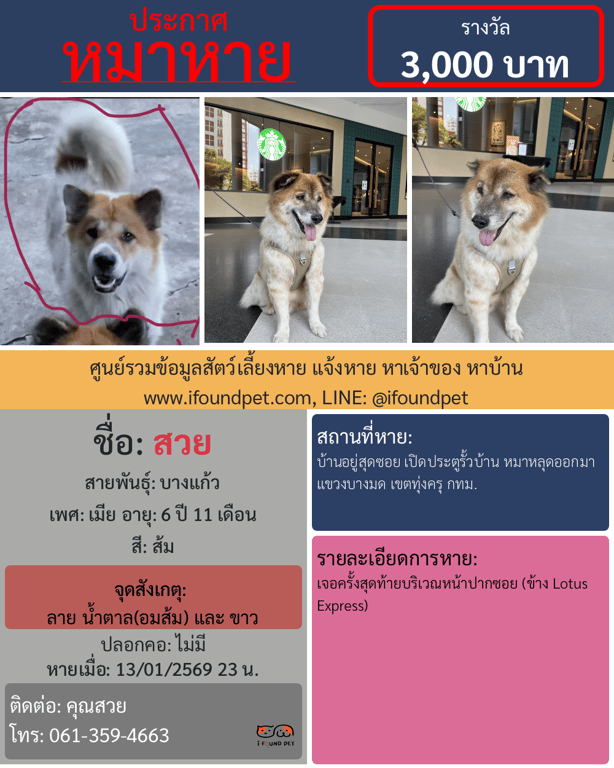 วันนี้ i FOUND PET ได้รวบรวมข้อมูลประกาศที่มีการแจ้งพบแล้วมาให้ไดัดูเป็นแนวทางกันครับ ว่าแต่ละท่านมีวิธีการตามหาน้องๆ อย่างไรกันบ้าน ถึงได้พาน้องๆ กลับบ้านได้ครับ