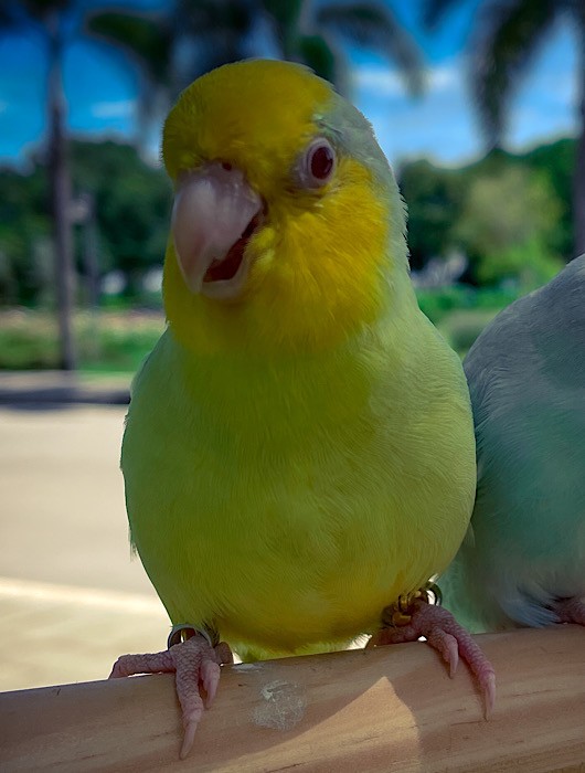 รอยตำหนิ: ที่ขามีปลอกขาสลักชื่อขวัญ0954469936ตาสีแดง