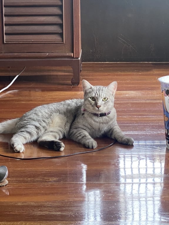 รอยตำหนิ: น้ำหนักประมาณ5กล. ตัวอ้วนขนฟูใส่ปลอกคอสี น้ำเงิน/แดงม่วง