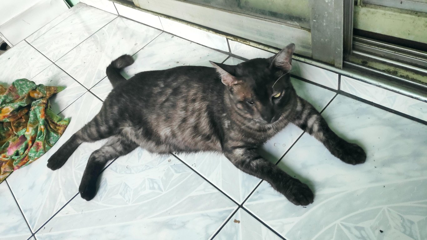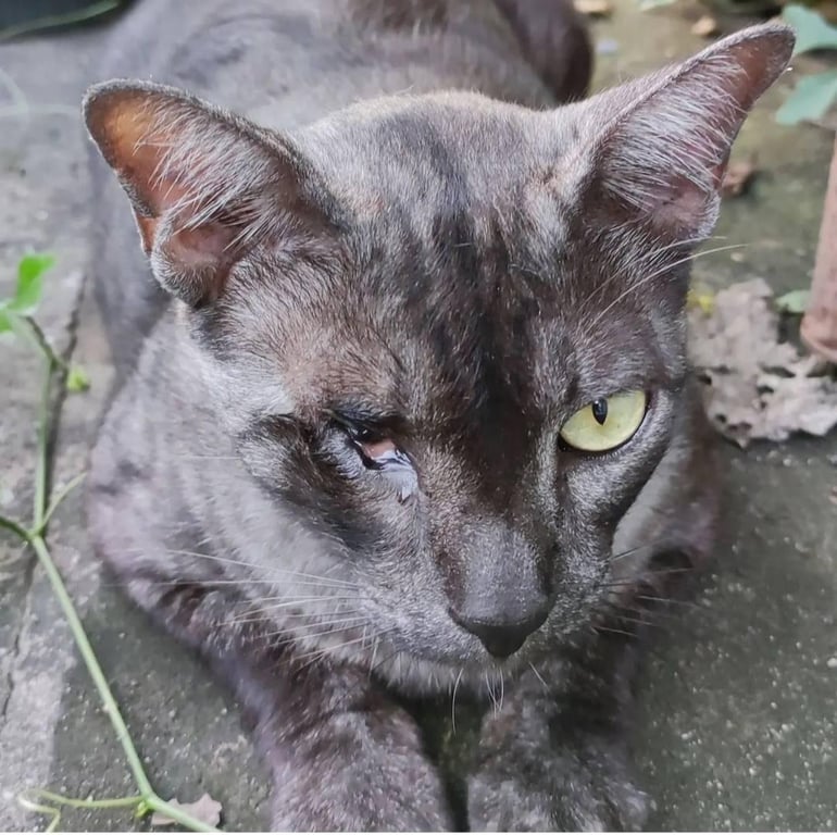 รอยตำหนิ: ปลายหางหักงอ ตาขวาบอดพี่เดียวเป็นแมวที่ชอบอยู่เหมือนแมวจร ไม่ชอบนอนในบ้าน มีนิสัยอ้อนคน ไม่กลัวคนแปลกหน้า กินเก่ง