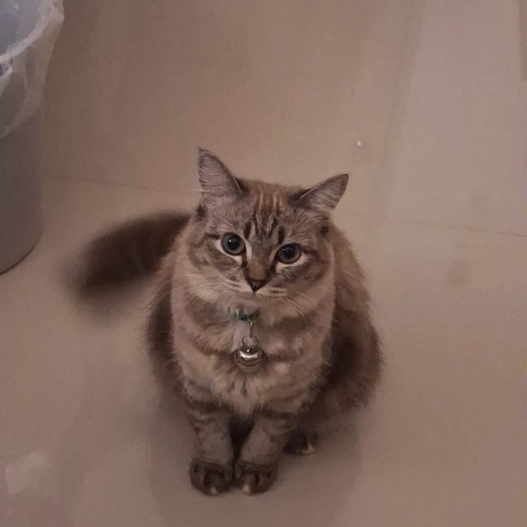 รอยตำหนิ: หางยาวฟู หน้าผากรูปตัวเอ็ม ตัวอ้วน หนักประมาณ3กิโลกรัม นิ้วเท้ามีเเต้มจุด4จุดเล็ๆนิสัยขี้กลัว ใส่ปลอกคอสีเขียว กระดิ่งอันใหญ่