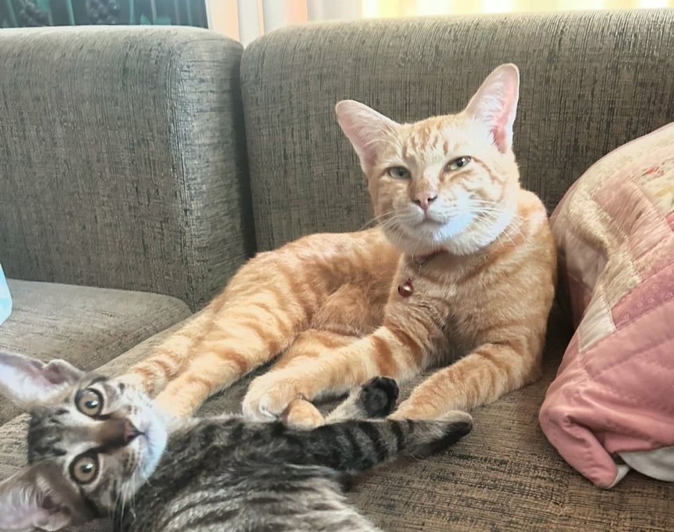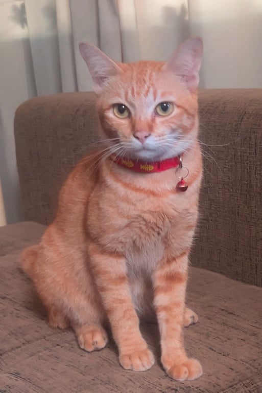 รอยตำหนิ: หางยาวสวย ปลายหางติดสีขาวน้องเป็นลูกแมวที่อาจถูกนำมาปล่อย แล้วมาป้วนเปี้ยนแถวๆบ้าน สงสารเลยเลี้ยงไว้จนน้องไว้ใจคนในบ้าน น้องขี้ตกใจ หวาดผวาไม่ไว้ใจใคร เหมือเคยถูกทำร้าย หรืออะไรซักอย่าง เป็นแมวเรียบร้อย