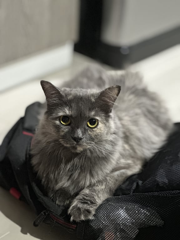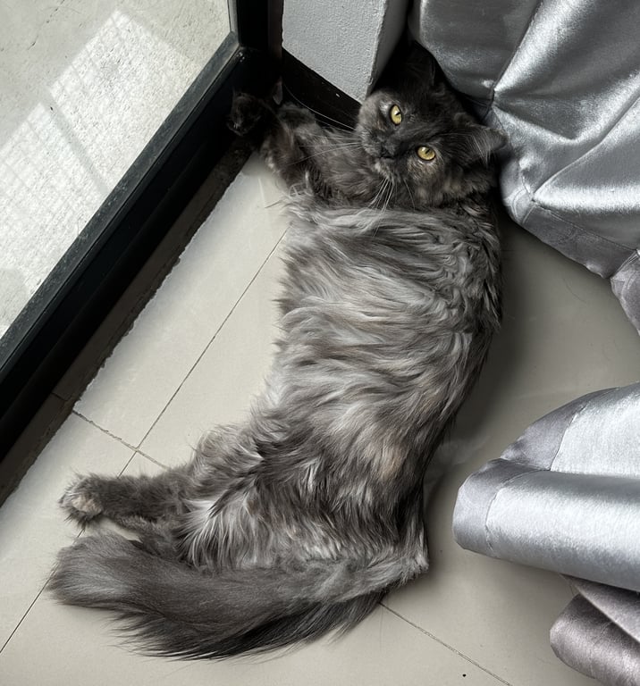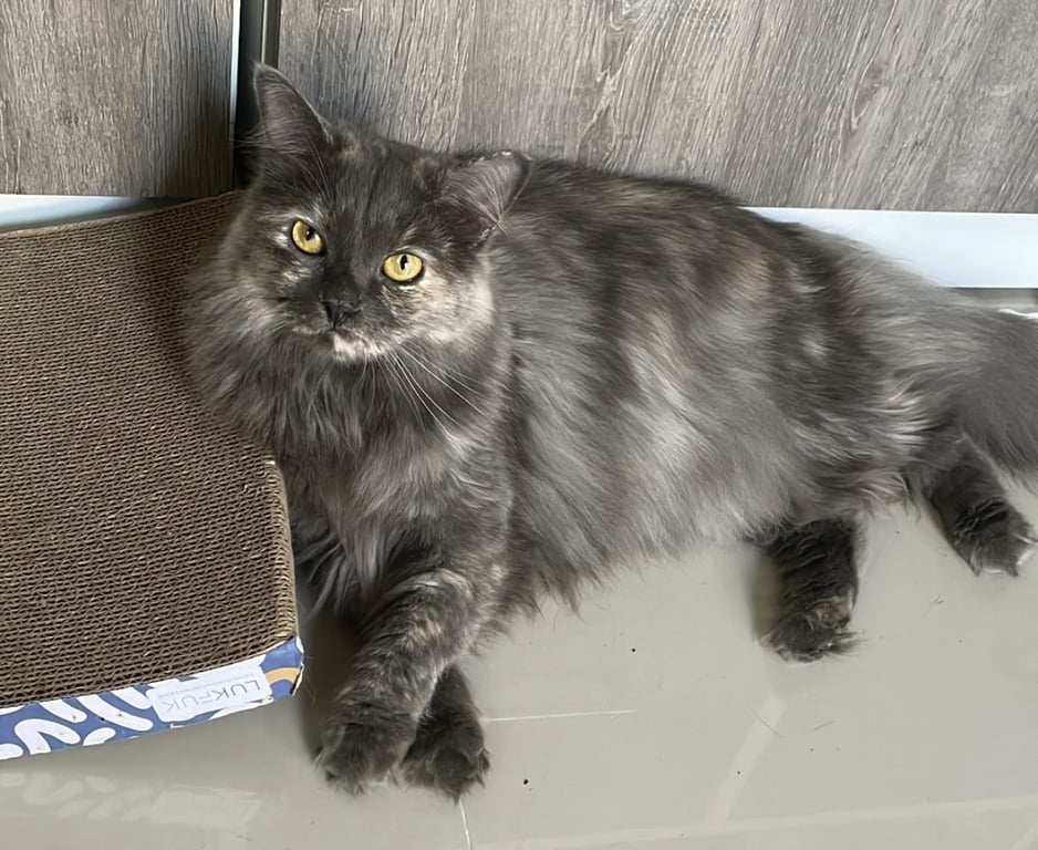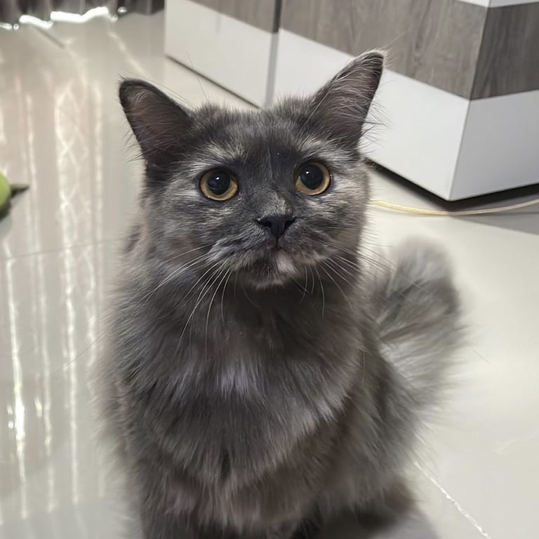 รอยตำหนิ: ขอบตาข้างนึงออกสีน้ำตาล พุงสีขาว ขนยาว ตัวอ้วนกลัวคน ไม่ชอบให้อุ้ม บางครั้งก็จะไปอ้อนคนแปลกหน้า
