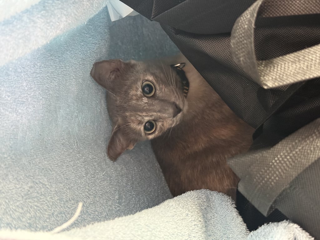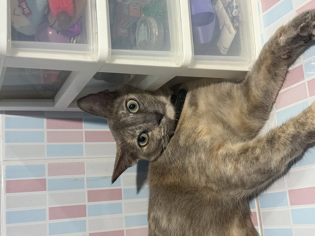 รอยตำหนิ: หน้าหงอยๆ ดูมอมๆตัวเล็ก มีปลอกคอสีเหลืองดำ