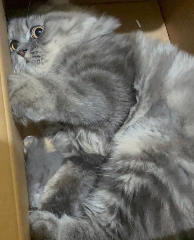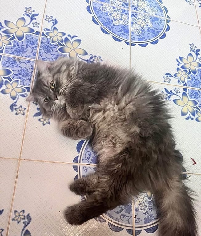 รอยตำหนิ: ขนสีเทาสลับขาว ตาสีเหลืองขี้กลัว กลัวคนมากๆ ไม่ค่อยร้อง