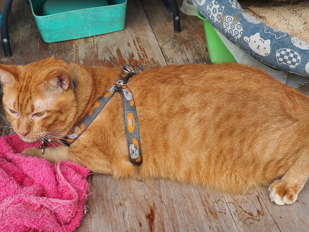 รอยตำหนิ: แมวอ้วน หนัก 7-7.5 กก. หางตรงยาว มีปลอกคอห้อยป้ายชื่อ และมีเบอร์ + ไลน์เจ้าของปกติเลี้ยงในกรง และปล่อยออกมาเดินเล่นบริเวณบ้าน น้องจะเดิน และอยู่ตามใต้ถุนบ้าน ไม่เคยออกนอกบริเวณบ้าน ไม่ชอบปีนป่าย ไม่ร้องเสียงดัง ไม่ชอบให้จับตัว