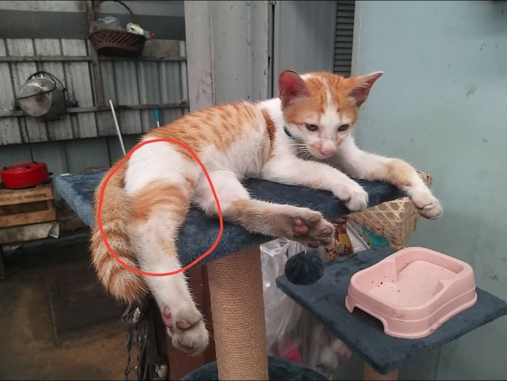 รอยตำหนิ: ขาขวามมีสีส้มฟาดอายุ4เดือนมีปอกคอสีฟ้าตัวไม่ใหญ่มากเป็นลูกแมว