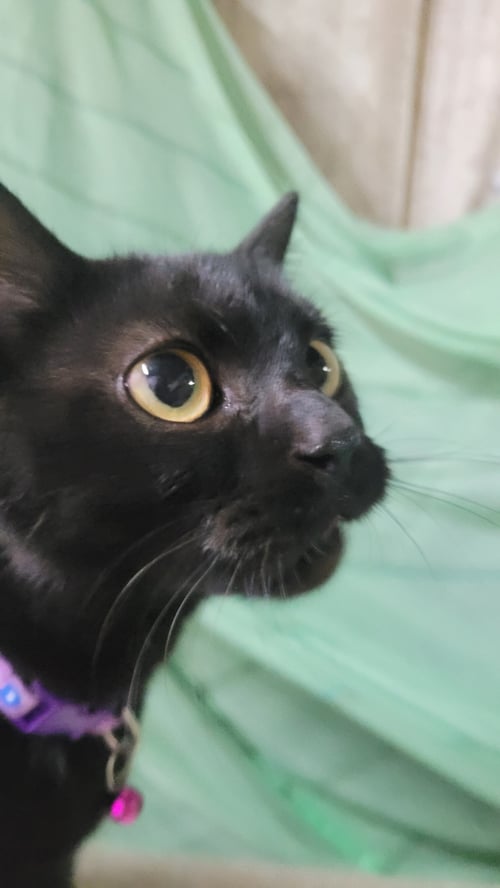 รอยตำหนิ: ปากตุ่ย จมูกแด่น ขนนุ่มมากมีปลอกคอสีชมพูพร้อมกระดิ่งเม็ดเล็ก นิสัยดี ไม่ดุ ไม่ค่อยร้อง ถ้าร้องจะร้อง แอ๊วๆ ขี้กลัว วิ่งเร็ว ไม่ชอบให้จับ