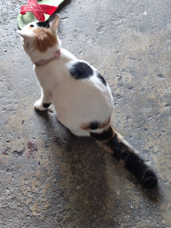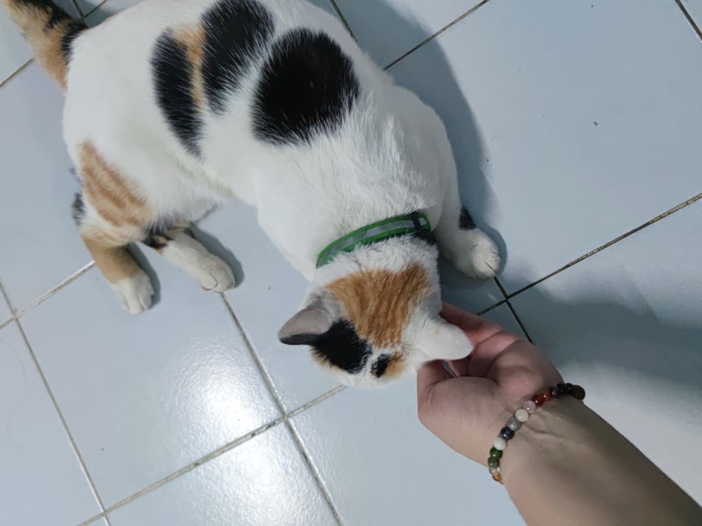 รอยตำหนิ: แต้มสี ดำ และส้ม ลายสามสีน้องเป็นแมวขี้ระปวง ขี้กลัว อายุเยอะ แต่ตัวเล็ก