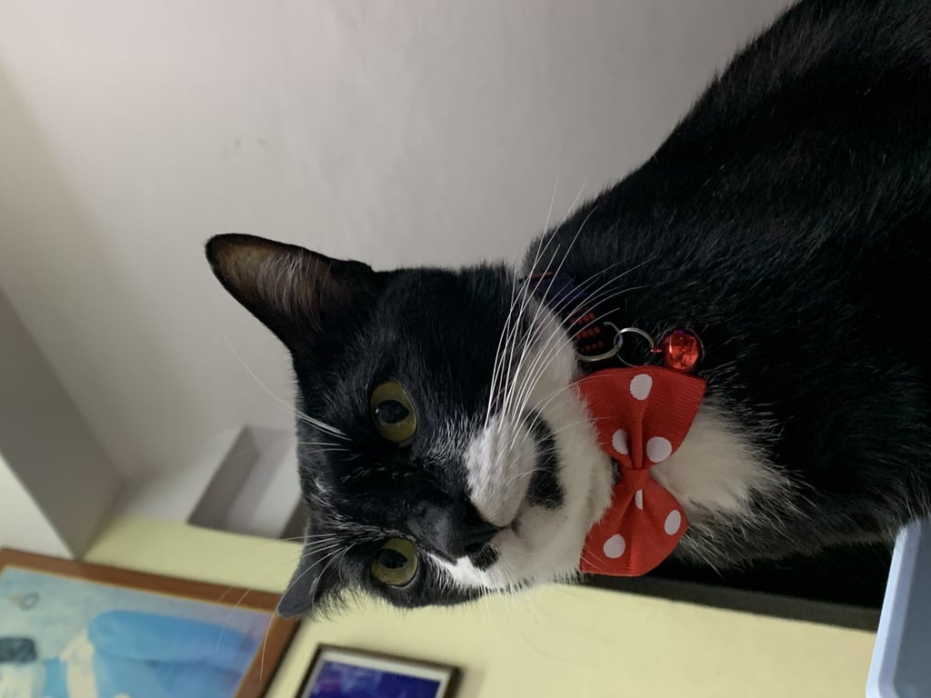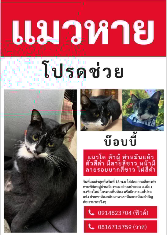 รอยตำหนิ: หน้ามีรอยบากสีขาวเล็ก ตรงคางมีสีขาว หน้าอกมีแผงสีขาวคล้ายใส่สูทอ้วน ขี้เล่นแต่ไม่ค่อยให้จับง่าย กลัวเสียงลมดังๆ(เช่น ไดร์เป่าผม)