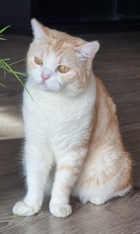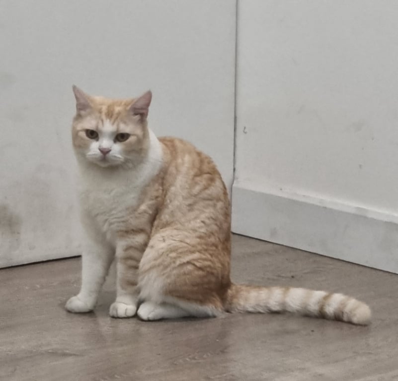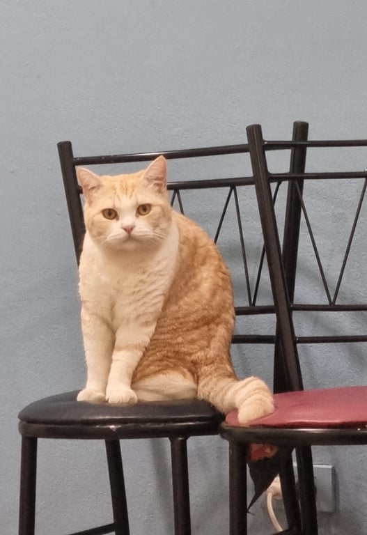 รอยตำหนิ: สีส้มครีม ลายปลาเผา หางลาย ตาสีเหลืองไม่กัด แต่ไม่ชอบอยู่กับคนเยอะ