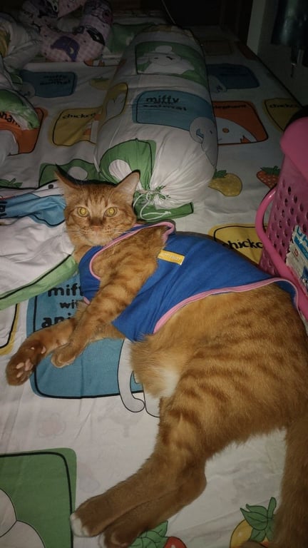 รอยตำหนิ: หางกวัก เปลือกปากข้างในมีสีดำใหญ่ๆนิสัย ขี้อ้อน นิ่ง สงบ ไม่ดื้อไม่ซน แมวส้ม หลุด Qc เป็นมิตรกับทุกคน รวมถึงแมวและหมา แต่มีขี้กลัวเวลาเจอผู้คนที่เยอะและวุ่นวาย
