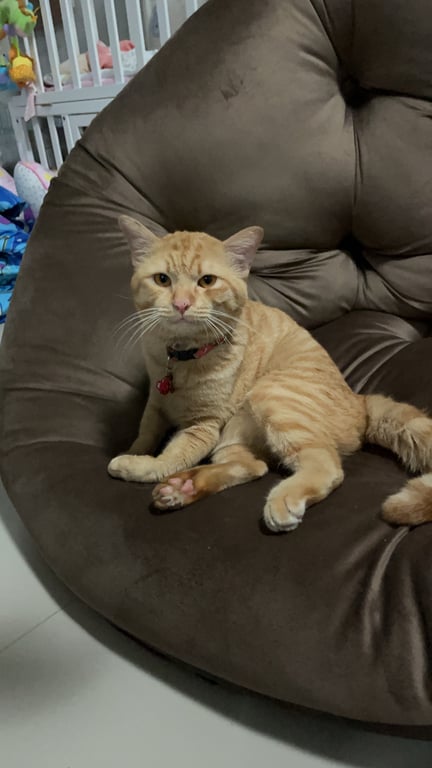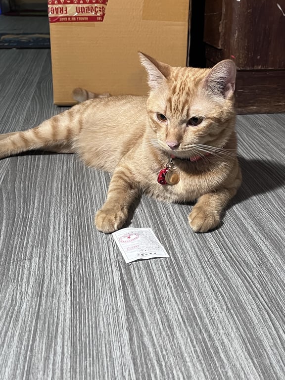 รอยตำหนิ: มีร้อยแผลเป็นที่จมูกซ้ายปลอกคอสีส้มสะท้อนแสง เชื่อง