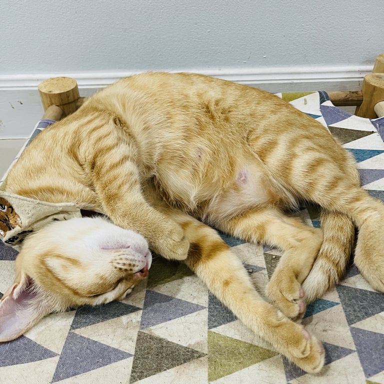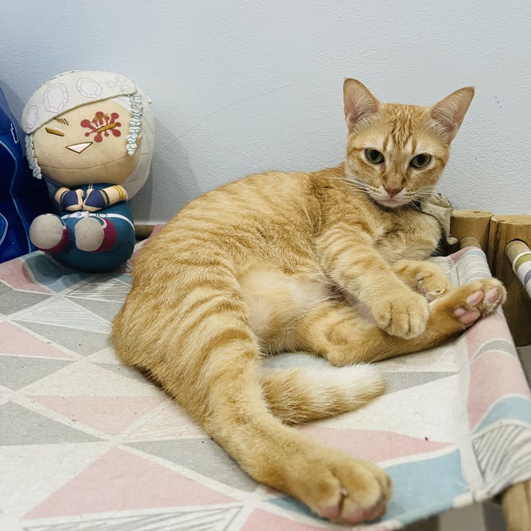 รอยตำหนิ: คางสีขาว ปลายหางตรงถ้าสัมผัสจะงอนิดหน่อยนิสัยขี้อ้อน เข้าคนง่าย ถ้าเรียกชื่อน้องจะร้องตอบ หรือลูบตัวน้องจะยอมนอนให้ลูบ