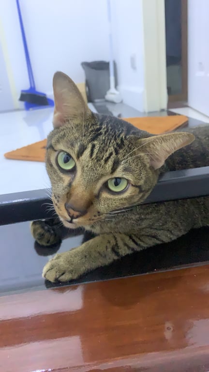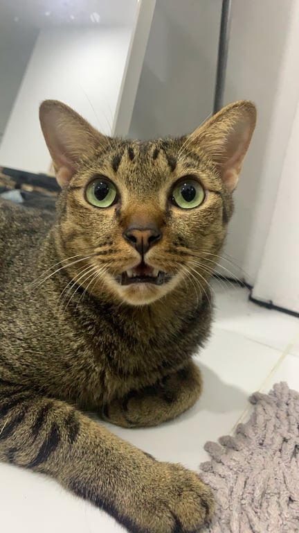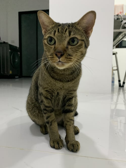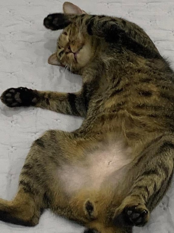 รอยตำหนิ: ปลายหางงอ มีแผลเป็นการทำหมั่นที่ท้อง