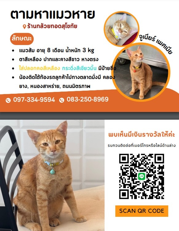 รอยตำหนิ: ปากและคางขาว หางตรง ตาสีเหลือง