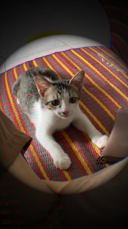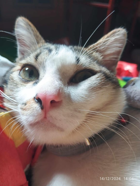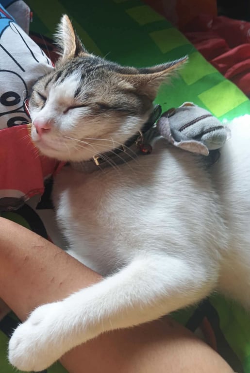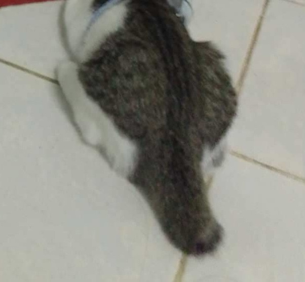 รอยตำหนิ: หางกุด มีจุดดำจมูกขวา ลายขาวสลิดกลัวเสียงดัง ถ้าสนิทกันแล้วขี้เล่น น้ำหนักประมาณ3โล คนแปลกหน้าก็จะดมๆก่อนแต่ถ้ารู้สึกไม่ปลอดภัยมันจะหนี แรงเยอะ