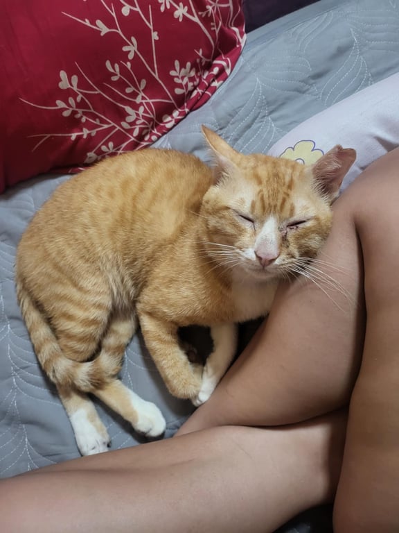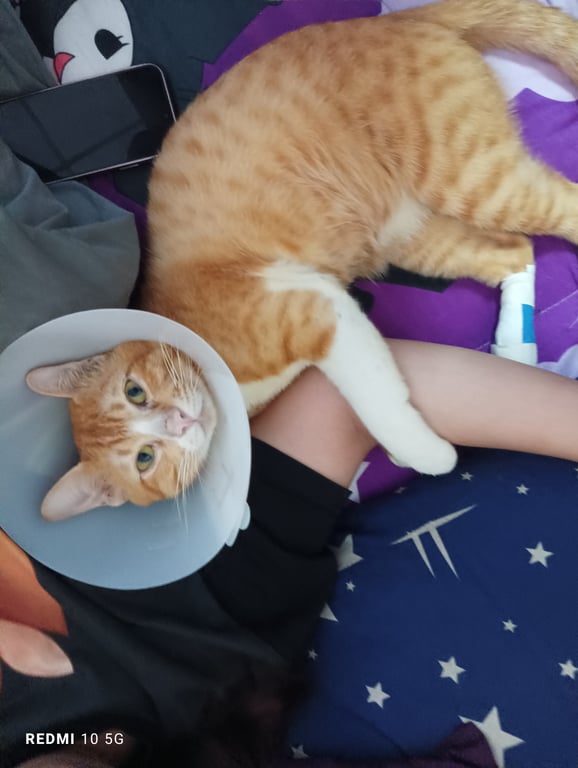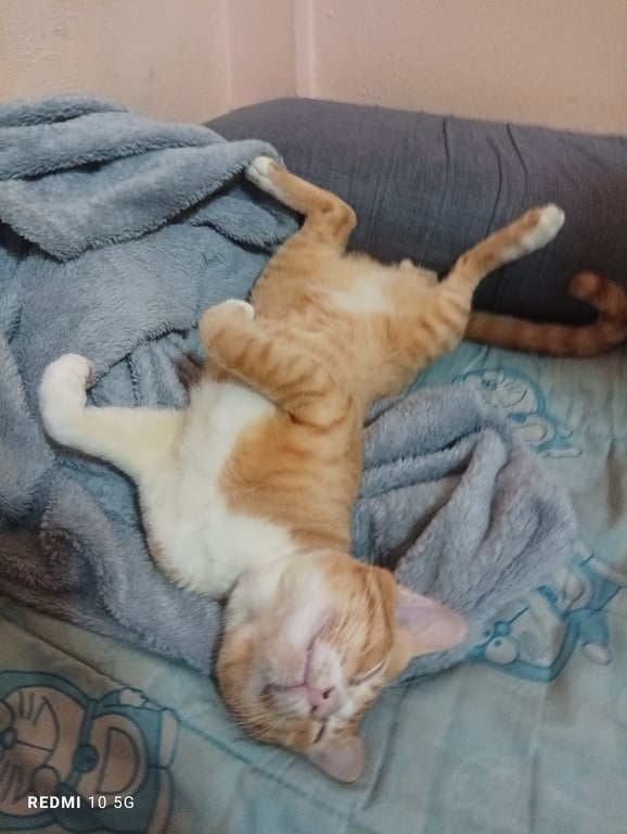 รอยตำหนิ: หูซ้ายมีรอยบิ่น ขาขวาหลังเล็กปหุปเข้าไม่ได้นิ้วโป้งไม่เข้ากับแมวอื่น ใจดีกับคน ไม่ชอบแมวสีดำ ขี้อ้อน เข้าหาคนง่าย