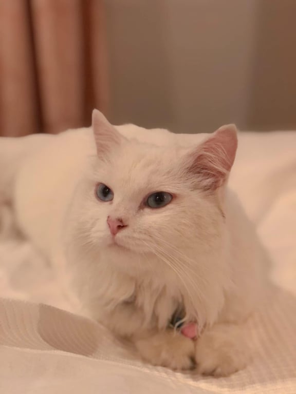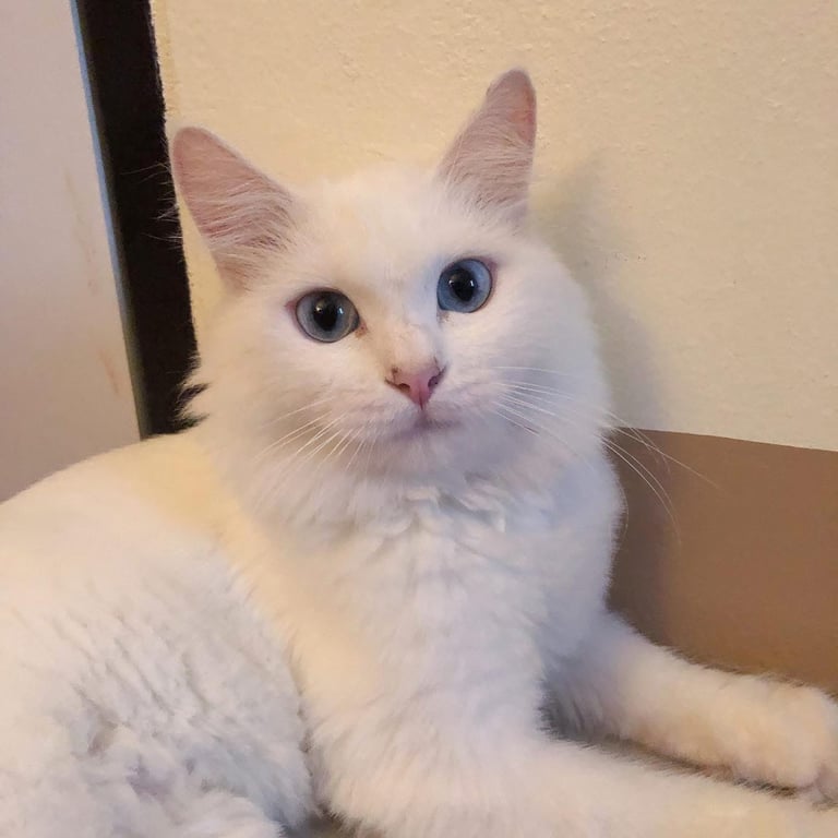 รอยตำหนิ: ตาสีฟ้า 2 ข้าง หูหนวกหูหนวก ตาสีฟ้า2ข้าง เป็นแมวของร้านกาแฟเมนี่มิ๊กซ์ ข้างมูลนิธิ